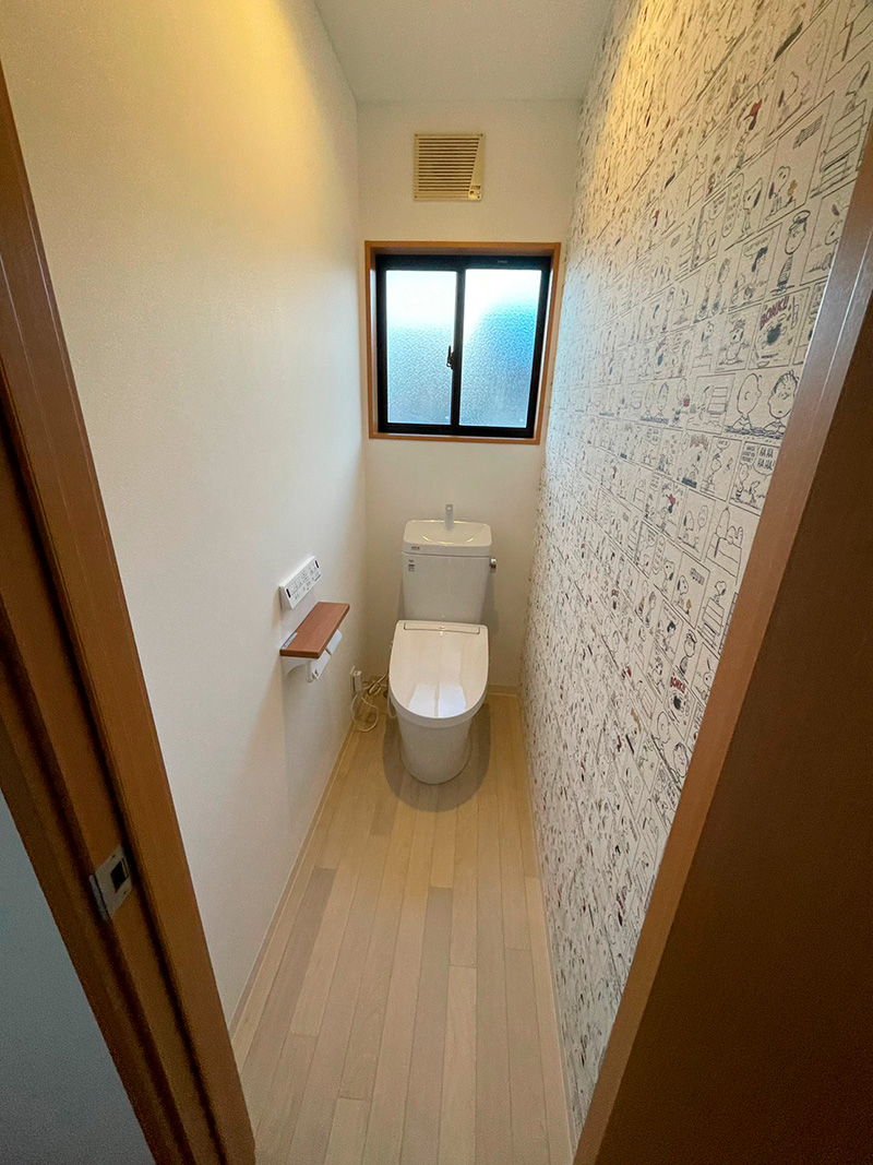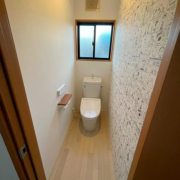 アクセントカラーの壁紙を貼替え、新鮮な空間を演出しています。
